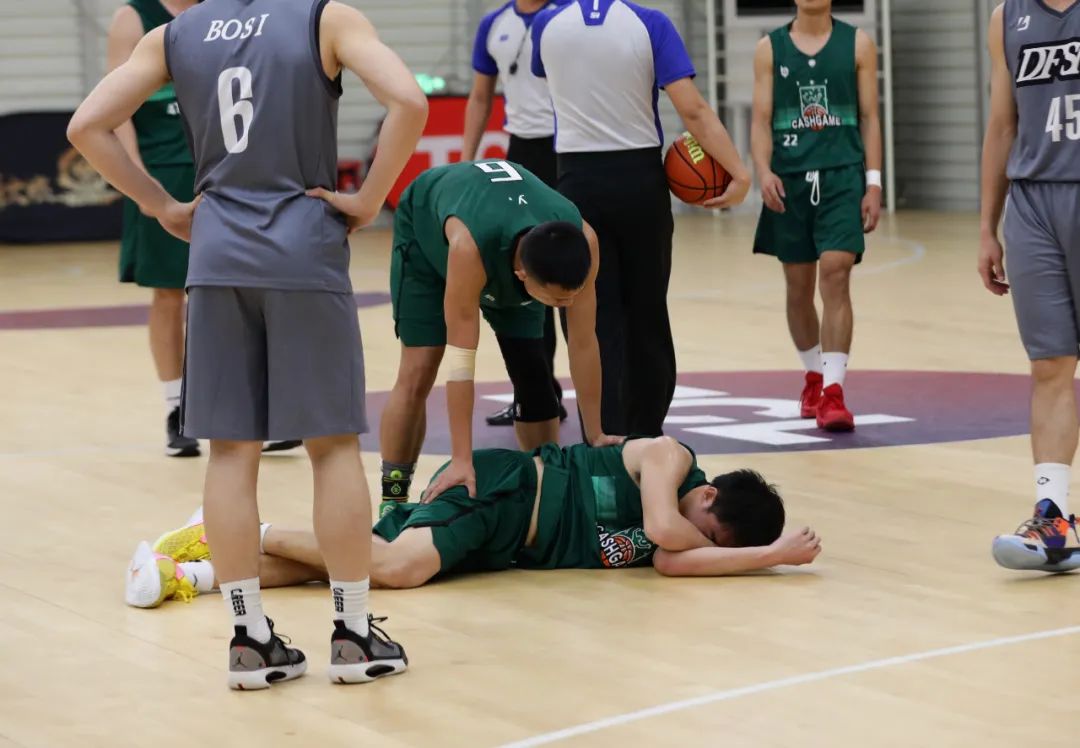 球员倒地拼抢争夺球权,寸土不让,每球必争。